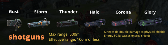 Shredders and Pulsars are classified as energy machine guns. However, Pulsars are more of midrange weapons since they got 600m max range and 550m effective range. On the other hand, Shredders behave more like Punishers, with accuracy increasing as you get closer to target. Still, it seems to fight for position against Halos, with the latter being a better lockdown choice at the moment. If lockdown changes go through and Shredders go untouched, they might gain more popularity.